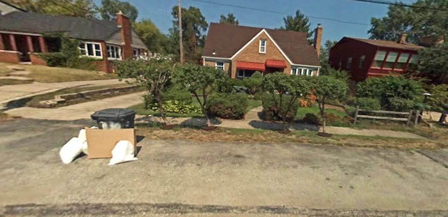 Again from Google Maps, our house, this time in September 2008. You can tell we had just visited Ikea by the extra garbage piled by the trashcan. Not the ugly color of the awnings and the missing trees, which had rotted from the inside out..